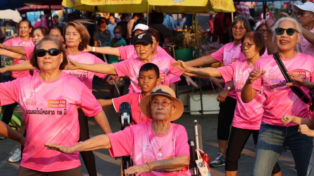 3. ผู้นำสุขภาวะ: พลังแห่งการเป็นแบบอย่าง “ผู้นำสุขภาวะ ไม่ได้หมายถึงผู้ใหญ่บ้าน ผู้นำ หรือผู้บริหารองค์กรเท่านั้น แต่หมายถึง ทุกคนที่ลุกขึ้นมาเป็นแบบอย่างแห่งการเปลี่ยนแปลง เช่น พ่อแม่ที่เลิกสูบบุหรี่เพื่อลูก ผู้สูงอายุที่ชวนเพื่อนมาเดินออกกำลังกาย หรือเด็กที่เริ่มแยกขยะในบ้านเช่นที่บ้านท่ามะพร้าว จ. กระบี่ เด็กๆทำเรื่องนี้จนสำเร็จ ทำให้ปัญหาขยะในชุมชนหมดไป เด็กสะกิดเตือนผู้ใหญ่ให้สวมหมวกกันน็อก จะเห็นว่าทุกคนล้วนคือผู้นำสุขภาวะในบทบาทของตนเอง หัวใจสำคัญคือ การเรียนรู้ข้ามวัย Intergenerational Learning เมื่อผู้สูงอายุแบ่งปันภูมิปัญญา และเยาวชนแบ่งปันพลังความคิดสร้างสรรค์ จะเกิดการเกื้อกูลระหว่างรุ่น เป็นชุมชนแห่งการเรียนรู้ที่อบอุ่น และมีพลังในการเปลี่ยนแปลง หัวใจของการเป็นผู้นำสุขภาวะ ไม่ได้หมายถึงการสั่งให้คนอื่นทำ แต่คือการเริ่มทำให้เห็นก่อน”