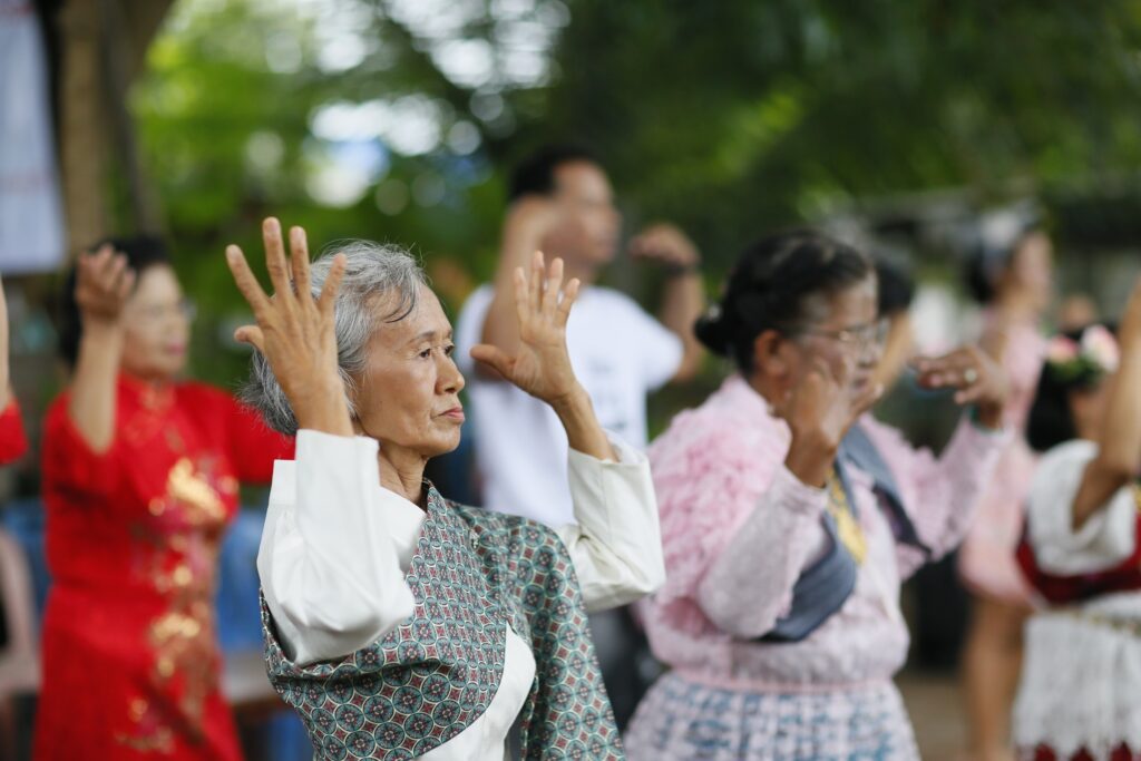 2. จากครอบครัวสู่ชุมชน: พลังของการอยู่ร่วมกันอย่างมีสุขภาวะ “ เมื่อครอบครัวสุขภาวะหลายครอบครัวมารวมกัน ชุมชนสุขภาวะก็จะเริ่มก่อร่างขึ้น ชุมชนสุขภาวะไม่จำเป็นต้องเริ่มจากโครงการใหญ่ แต่อาจเริ่มจากสิ่งเล็กๆ เช่น การตั้งกติกาชุมชนปลอดเหล้า บุหรี่ และยาเสพติด การเปิดพื้นที่สาธารณะปลอดภัยสำหรับเด็ก และผู้สูงอายุ การจัดตลาดสุขภาวะ ตลาดที่ปราศจากปัจจัยเสี่ยงทางสุขภาพ เช่นที่ตำบลเจ็ดเสมียน ที่คนในชุมชนได้ประกาศให้ ตลาด 119 ปี เป็นตลาดสุขภาวะ ไร้ควันบุหรี่ สิ่งเหล่านี้ช่วยสร้าง *ข้อตกลงร่วม* ที่คนในชุมชนรู้สึกเป็นเจ้าของ และทำให้สุขภาวะ กลายเป็นเรื่องของทุกคน ไม่ใช่หน้าที่ของใครคนใดคนหนึ่ง เพราะเมื่อชุมชนดูแลกันเองได้ ความสุขจะเติบโตได้เองโดยไม่ต้องสั่ง”