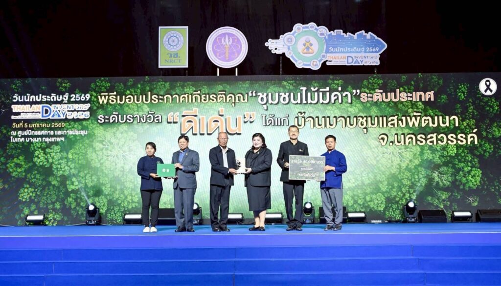 วันที่ 5 มกราคม 2569 สำนักงานการวิจัยแห่งชาติ (วช.) กระทรวงการอุดมศึกษา วิทยาศาสตร์ วิจัยและนวัตกรรม ร่วมกับ กรมป่าไม้ สำนักงานพัฒนาเศรษฐกิจจากฐานชีวภาพ (องค์การมหาชน) (สพภ.) และธนาคารเพื่อการเกษตรและสหกรณ์การเกษตร (ธ.ก.ส.) จัดเสวนาในหัวข้อ “ไม้มีค่า สร้างป่า สร้างคน ชุมชนยั่งยืน” และพิธีมอบประกาศเกียรติคุณ “ชุมชนไม้มีค่า” ระดับประเทศ ครั้งที่ 3 ประจำปี 2568 โดย ดร.วิภารัตน์ ดีอ่อง ผู้อำนวยการสำนักงานการวิจัยแห่งชาติ กล่าวแสดงความยินดีแก่ชุมชนที่ได้รับประกาศเกียรติคุณ พร้อมด้วย ดร.ธีรภัทร ประยูรสิทธ ประธานคณะกรรมการโครงการประกาศเกียรติคุณ “ชุมชนไม้มีค่า” ระดับประเทศ กล่าวถึงความเป็นมาของโครงการ ศาสตราจารย์ ดร.สนิท อักษรแก้ว ประธานคณะอนุกรรมการขับเคลื่อนโครงการชุมชนไม้มีค่า กล่าวถึงภาพรวมการขับเคลื่อนโครงการชุมชนไม้มีค่า ณ ศูนย์นิทรรศการและการประชุมไบเทค บางนา กรุงเทพฯ