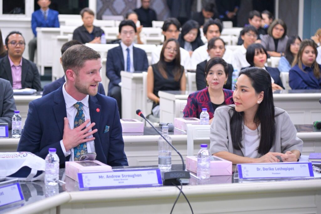 Mr. Andrew Straughan, Global Director of NCUK (Northern Consortium United Kingdom) กล่าวถึงความมุ่งมั่นในความร่วมมือครั้งนี้ว่า NCUK ก่อตั้งจากการรวมตัวของกลุ่มมหาวิทยาลัยชั้นนำในสหราชอาณาจักร อาทิ University of Manchester และมหาวิทยาลัยชื่อดังอีกหลายแห่ง ทั้งในประเทศออสเตรเลีย นิวซีแลนด์ แคนาดา อเมริกา เป็นต้น โดยทำหน้าที่เป็นเครือข่ายพันธมิตรที่จัดเตรียมหลักสูตรปรับพื้นฐานทางวิชาการเพื่อให้นักเรียนต่างชาติมีทักษะที่จำเป็นก่อนเข้าศึกษาต่อในระดับปริญญาตรีและปริญญาโท