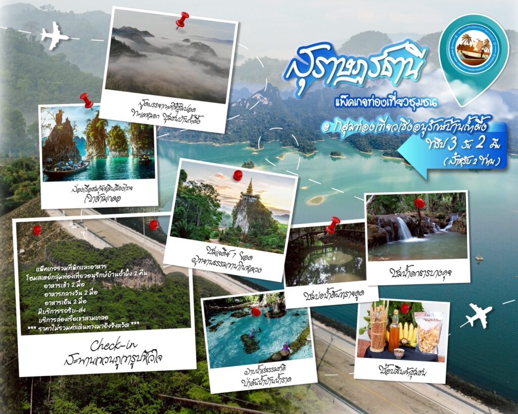ศึกษาเส้นทางสมุนไพร-ป่าชุมชน แหล่งเรียนรู้ บ่อน้ำดันทรายดูด ถ้ำน้ำลอด น้ำตกธารบางคุย ชมปลา ไหว้พระ ณ สำนักสงฆ์ อุทยานธรรมเขานาในหลวง ชมเจดีย์ 7 ยอด จุดชมวิวเขื่อนรัชชประภา สะพานแขวนภูเขารูปหัวใจ ล่องเรือชมกุ้ยหลินเมืองไทย เขาสามเกลอ อาบน้ำแร่ธรรมชาติ ณ ป่าต้นน้ำบ้านน้ำราด (น้ำใสสะอาด) ชมทะเลหมอก และพระอาทิตย์ขึ้น ชมแปลงผักปลอดสารพิษ ฝึกทำผลิตภัณฑ์ชุมชน ซื้อสินค้าชุมชน ติดต่อสอบถาม ได้ที่โทร. 089-290-9420