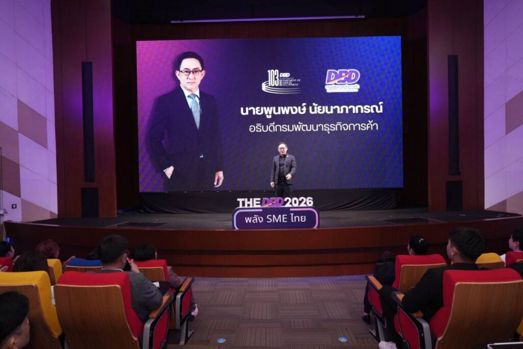กรมพัฒนาธุรกิจการค้า กระทรวงพาณิชย์ จัดงาน ‘The DBD 2026 : พลัง SME ไทย’ ในวันพฤหัสบดีที่ 29 มกราคม 2569 ณ C Asean อาคาร CW Tower ชั้น 10 กรุงเทพมหานคร เพื่อเป็นเวทีแลกเปลี่ยนความรู้และประสบการณ์ พลิกมุมมองการดำเนินธุรกิจ ยกระดับเครื่องมือการบริหารจัดการยุคใหม่ เชื่อมโยงเครือข่ายพันธมิตรทางธุรกิจ เสริมความพร้อมให้ผู้ประกอบการ SME รับมือกับการเปลี่ยนแปลง พร้อมขยายโอกาสทางการค้าและต่อยอดความร่วมมือในอนาคต โดยมีผู้ประกอบการที่ผ่านการพัฒนาจากกรมพัฒนาธุรกิจการค้า ซึ่งเป็นเจ้าของกิจการและทายาทธุรกิจเข้าร่วม