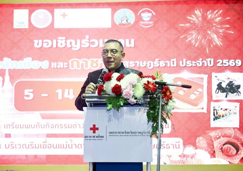 วันที่ 5 กุมภาพันธ์ 2569 สำนักงานการวิจัยแห่งชาติ (วช.) กระทรวงการอุดมศึกษา วิทยาศาสตร์ วิจัยและนวัตกรรม จัดพิธีเปิด “การแสดงโดรนแปรอักษรส่งเสริมการท่องเที่ยว“ ภายในงาน “สมโภชศาลหลักเมืองและกาชาดสุราษฎร์ธานี” ประจำปี 2569 โดยมี นายจุมพฏ วรรณฉัตรสิริ ผู้ว่าราชการจังหวัดสุราษฎร์ธานี เป็นประธาน ดร.วิภารัตน์ ดีอ่อง ผู้อำนวยการสำนักงานการวิจัยแห่งชาติ กล่าวสนับสนุนนวัตกรรม นายประเสริฐ บุญประสพ นายกเทศมนตรีนครสุราษฎร์ธานี อาจารย์พิศิษฐ์ มิตรเกื้อกูล นายกสมาคมกีฬาเครื่องบินจำลองและวิทยุบังคับคณะผู้บริหารในพื้นที่ให้การต้อนรับ ประชาชนในพื้นที่ เข้าร่วมงานอย่างคับคั่ง ณ บริเวณริมเขื่อนแม่น้ำตาปี อำเภอเมืองสุราษฎร์ธานี จังหวัดสุราษฎร์ธานี