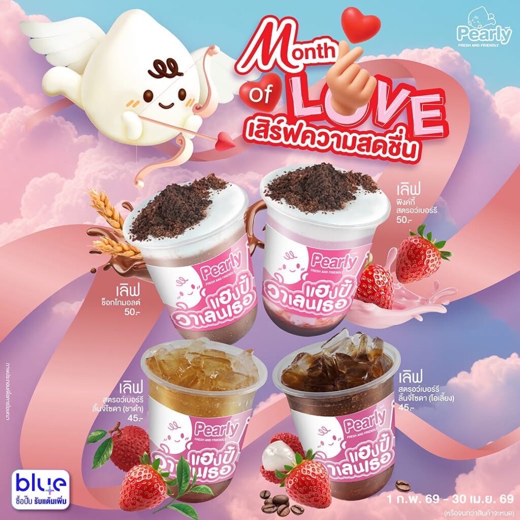 คุณพรรณวดี กล่าวว่า ภายใต้กลยุทธ์การรีแบรนด์ Pearly ในคอนเซ็ปต์ Fresh & Friendly ในปีนี้ ผู้บริโภคจะได้พบกับความน่ารัก สดใสและเป็นมิตรจากน้องเพิร์ลลี่ ที่จะมาส่งมอบในเทศกาลสำคัญๆ เพื่อร่วมเฉลิมฉลองช่วงเวลา แห่งความสุขไปด้วยกันตลอดทั้งปี อาทิ “เพิร์ลลี่อินเลิฟ เสริฟความสดชื่น ฉลองเดือนแห่งความรัก” สร้างสีสันวาเลนไทน์ให้หวานฉ่ำสดใสยิ่งกว่าเดิม ในช่วงเดือนกุมภาพันธ์ – มีนาคม2569 พิเศษสุด ๆ กับหมอนซุกมือน้องเพิร์ลลี่สุดน่ารัก แลกซื้อได้เพียง 299บาทเท่านั้น เมื่อซื้อเครื่องดื่มกลุ่มราคา 39 บาทครบ 2 แก้ว พร้อมเครื่องดื่มคอลเลกชัน ”เลิฟ” กับ 4 เมนูใหม่ ในราคาเริ่มต้นเพียง 45 บาท เป็นต้นและเรายังมีโปรโมชั่นแจกพรีเมี่ยมน้องเพิร์ลลี่ ตลอดทั้งปี