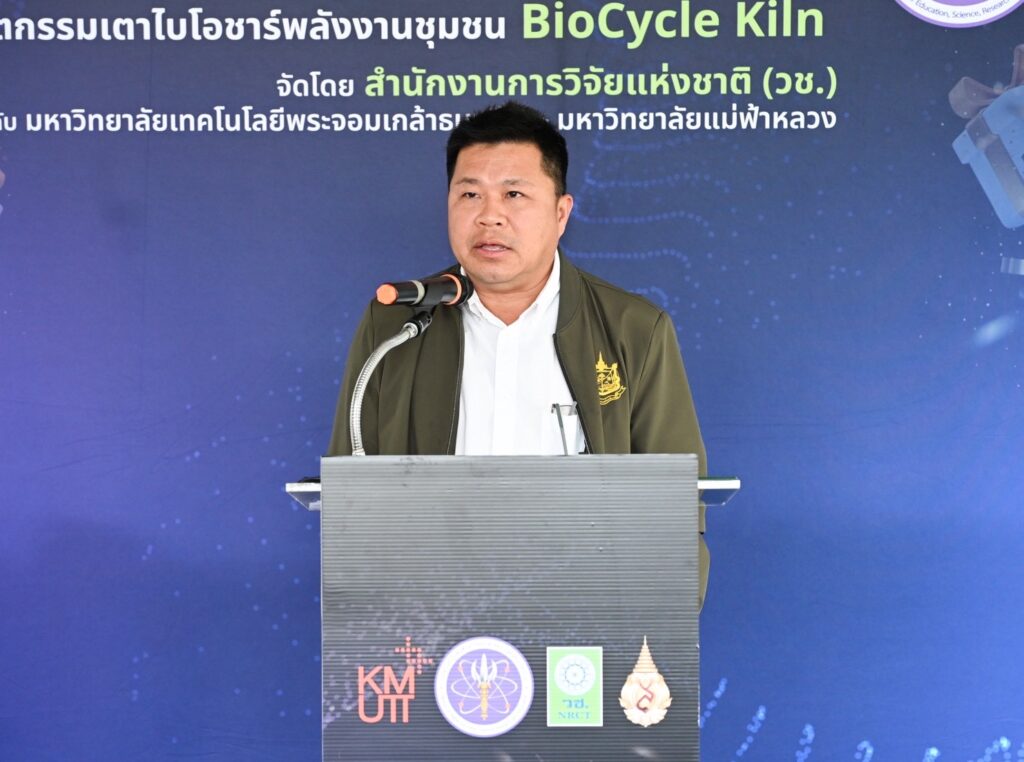 ดร.วิภารัตน์ ดีอ่อง ผู้อำนวยการสำนักงานการวิจัยแห่งชาติ กล่าวว่า นวัตกรรมเตาไบโอชาร์พลังงานชุมชนเป็นผลงานต่อเนื่องจากแผนงานวิจัยมุ่งเป้า PM 2.5 ที่ได้รับการสนับสนุนจาก วช. เพื่อนำองค์ความรู้ด้าน ววน. มาใช้แก้ปัญหาการจัดการเศษวัสดุเหลือใช้ทางการเกษตร สามารถแปรรูปกลับมาใช้ประโยชน์ในรูปของไบโอชาร์ ช่วยปรับปรุงคุณภาพดิน ลดต้นทุนการผลิต และเพิ่มมูลค่าทางเศรษฐกิจให้แก่เกษตรกรและชุมชน ควบคู่กับการลดการเผาในที่โล่ง ซึ่งเป็นสาเหตุสำคัญของปัญหามลพิษทางอากาศ PM2.5 อันจะช่วยลดผลกระทบต่อสุขภาพของประชาชนและสิ่งแวดล้อม