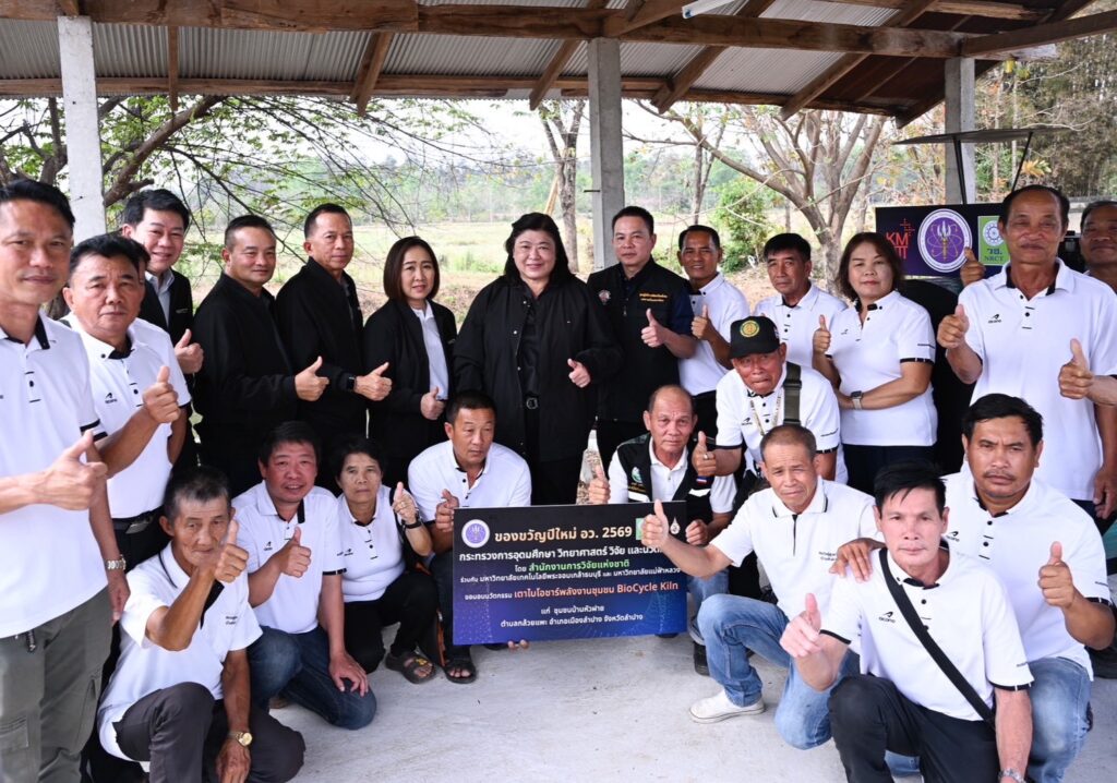 วันที่ 22 กุมภาพันธ์ 2569 สำนักงานการวิจัยแห่งชาติ(วช.) กระทรวงการอุดมศึกษา วิทยาศาสตร์ วิจัยและนวัตกรรม จัด “พิธีส่งมอบนวัตกรรมเตาไบโอชาร์พลังงานชุมชน BioCycle Kiln” ภายใต้โครงการของขวัญปีใหม่ อว. 2569 โดยมี ดร.วิภารัตน์ ดีอ่อง ผู้อำนวยการสำนักงานการวิจัยแห่งชาติ เป็นประธานในพิธี พร้อมนี้ รองศาสตราจารย์ ดร.อนรรฆ ขันธะชวนะ หัวหน้าโครงการวิจัย กล่าวรายงาน, นายธาราเงิน จันทร์คำ รองนายกเทศมนตรีเทศบาลเมืองเขลางค์นคร กล่าวต้อนรับ, นางสาวศิรินทร์พร เดียวตระกูล ผู้อำนวยการสำนักงานการวิจัยแห่งชาติ คณะผู้ทรงคุณวุฒิ วช. เข้าร่วมในพิธี ณ ป่าชุมชนบ้านหัวฝาย อ.เมืองลำปาง จ.ลำปาง