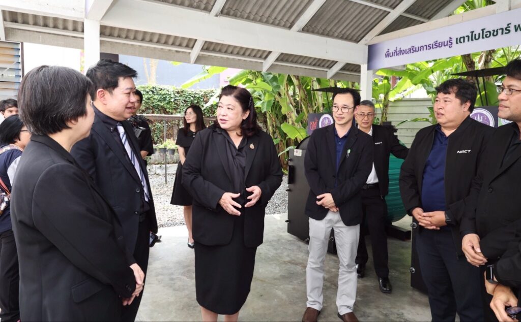 ดร.วิภารัตน์ ดีอ่อง กล่าวว่า ปัญหาฝุ่นละอองขนาดเล็ก PM2.5 จากการเผาวัสดุเหลือใช้ทางการเกษตรยังคงเป็นความท้าทายสำคัญของประเทศ ที่เกิดขึ้นอย่างต่อเนื่องในหลายพื้นที่ ส่งผลให้ค่าฝุ่นละอองอยู่ในระดับที่กระทบต่อสุขภาพและสิ่งแวดล้อม วช. จึงสนับสนุนการวิจัยและพัฒนาเทคโนโลยีการผลิตไบโอชาร์ (Biochar) เพื่อเป็นอีกทางเลือกในการจัดการเศษวัสดุทางการเกษตร ลดการเผาในที่โล่ง และเพิ่มมูลค่าทางเศรษฐกิจให้แก่ชุมชนควบคู่กันไป “พื้นที่ส่งเสริมการเรียนรู้พลังงานชุมชน นวัตกรรมเตาไบโอชาร์” แห่งนี้ เพื่อพัฒนาให้เป็นพื้นที่การเรียนรู้ด้านเทคโนโลยีพลังงานชีวมวลสำหรับประชาชน นักเรียน นักศึกษา และผู้สนใจทั่วไป โดยมุ่งให้เกิดการเรียนรู้จากนวัตกรรมต้นแบบ ทั้งการสาธิตกระบวนการผลิต การทดลองปฏิบัติจริง การต่อยอดแนวคิดเชิงนวัตกรรม และเป็นต้นแบบของการบูรณาการองค์ความรู้จากภาคการศึกษา ภาครัฐ และภาคชุมชน เพื่อร่วมกันแก้ไขปัญหาสิ่งแวดล้อมอย่างเป็นระบบ พร้อมสร้างกลไกการขยายผลเทคโนโลยีที่เหมาะสมสู่สังคมในวงกว้าง โดยเชื่อมั่นว่าเมื่อองค์ความรู้ทางวิชาการได้รับการถ่ายทอดอย่างถูกต้อง เข้าถึงง่าย และสอดคล้องกับบริบทของพื้นที่ จะสามารถเปลี่ยน “ปัญหา” ให้เป็น “โอกาส” และเปลี่ยน “วัสดุเหลือทิ้ง” ให้กลายเป็น “ทรัพยากรที่มีคุณค่า” เพื่อการพัฒนาที่ยั่งยืน