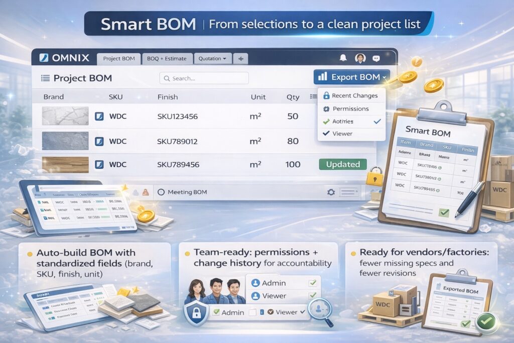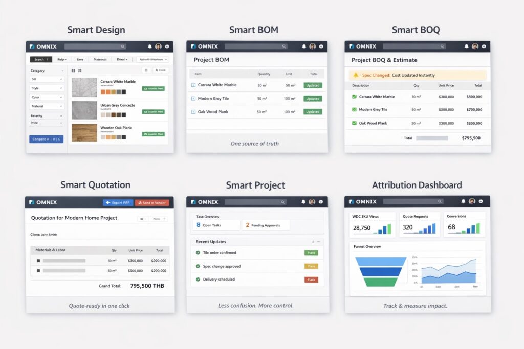 คุณภาณุเมศวร์ เศรษฐสิริสุนทร| Marketing, Branding & Product Consultant, OMNIX กล่าวว่า OMNIX ถูกออกแบบจากทีมผู้เชี่ยวชาญที่ “รู้ปัญหาในงานจริง” โดยมีเป้าหมายทำให้ทุกอย่างง่ายขึ้น เร็วขึ้น และแม่นยำมากขึ้น พร้อมยืนยันกำหนดการเปิดใช้งานจริงว่า “OMNIX ถูกพัฒนาโดยคนที่เข้าใจงานออกแบบจริง ๆ เราตั้งใจให้ workflow ของการสเปควัสดุ การทำ BOM/BOQ และการออกใบเสนอราคาเป็นมาตรฐานเดียวกัน เพื่อให้ทีมทำงานร่วมกันได้อย่างมีประสิทธิภาพ และวัดผลได้ชัดเจน โดยมีแผนเปิดใช้งานจริงใน เดือนพฤษภาคม2569 ในรูปแบบสมาชิก (Subscription)”