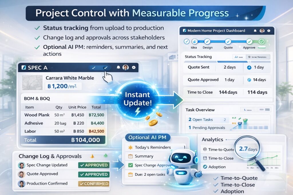 กรุงเทพฯ— 5 มีนาคม2569 OMNIX จัดงานแถลงข่าว ณ Built-in Studio Thailand เพื่อประกาศความร่วมมือในการพัฒนาแพลตฟอร์ม OMNIX — Smart Design OS ซึ่งเป็นการร่วมพัฒนาระหว่างทีมผู้เชี่ยวชาญด้านงานออกแบบตกแต่งภายในของไทย และ Opsian Technology สหรัฐอเมริกา โดยมีเป้าหมายสร้างระบบนิเวศการทำงานแบบใหม่ของวงการตกแต่งภายในในแนวคิด SMART INTERIOR ECOSYSTEM เพื่อช่วยให้การเลือกวัสดุ การจัดทำ BOM/BOQ การออกใบเสนอราคา และการติดตามงาน “สมาร์ทขึ้น เร็วขึ้น แม่นยำขึ้น” พร้อมประกาศแผน เปิดใช้งานจริงในเดือนพฤษภาคม256