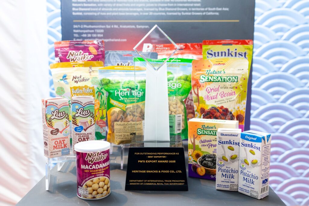 พิธีมอบรางวัลจัดขึ้นในวันพฤหัสบดีที่ 28 สิงหาคม 2568 ณ ห้องบุรฉัตรไชยากร ชั้น 4 ตึกสำนักงานปลัดกระทรวงพาณิชย์ เครือเฮอริเทจแสดงความภาคภูมิใจเป็นอย่างยิ่งที่ได้รับรางวัลอันทรงเกียรตินี้ และยืนยันความมุ่งมั่นที่จะเดินหน้าพัฒนาผลิตภัณฑ์ที่มีคุณภาพ สะอาด ปลอดภัย และได้มาตรฐานระดับโลกอย่างต่อเนื่อง พร้อมสร้างคุณค่าให้กับอุตสาหกรรมอาหารและเครื่องดื่มเพื่อสุขภาพของไทย และยกระดับประเทศไทยให้เป็นศูนย์กลางอาหารเพื่อสุขภาพของภูมิภาค