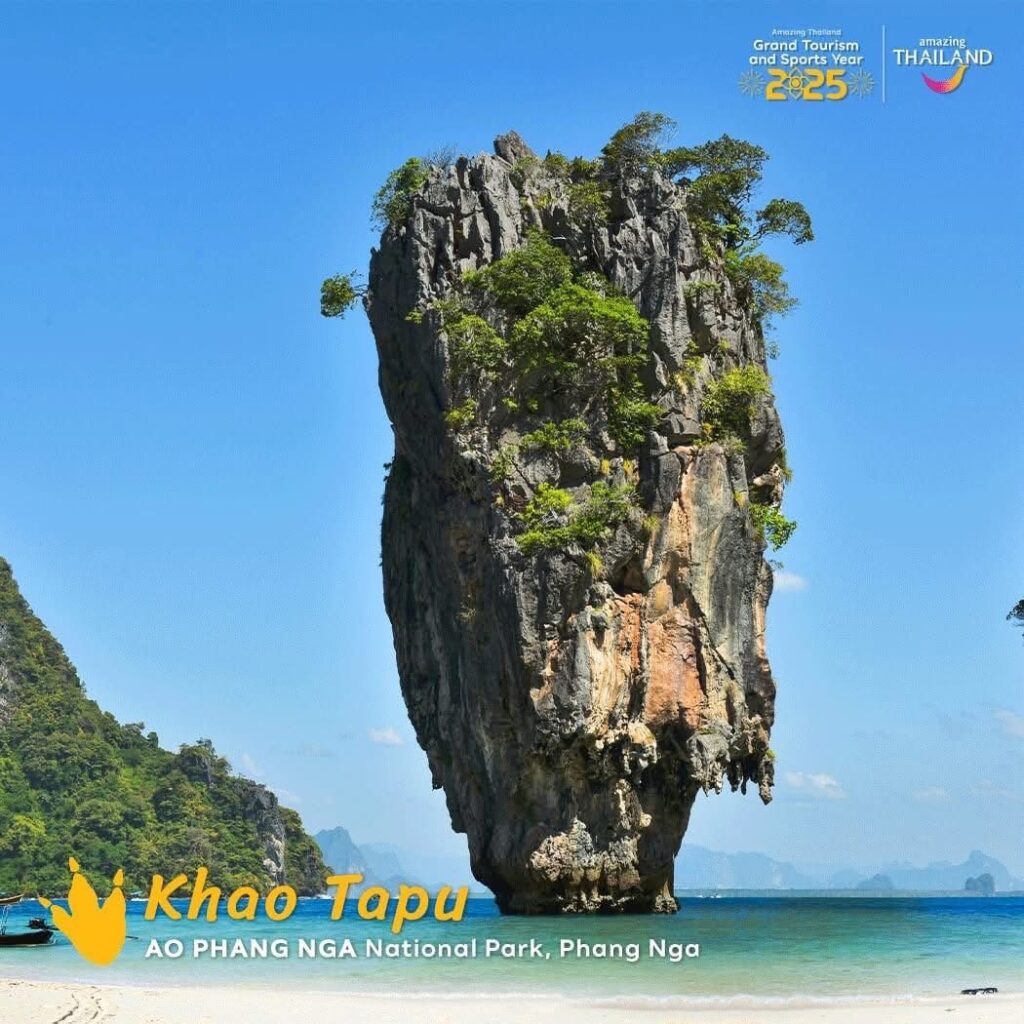 – Khao Tapu (James Bond Island): Named for its unique shape — a wider top and narrow base resembling a crab’s eye — and made famous by the James Bond movie. The island can only be viewed from a distance by boat or from the sandbar of Koh Ping Kan. ⛰️