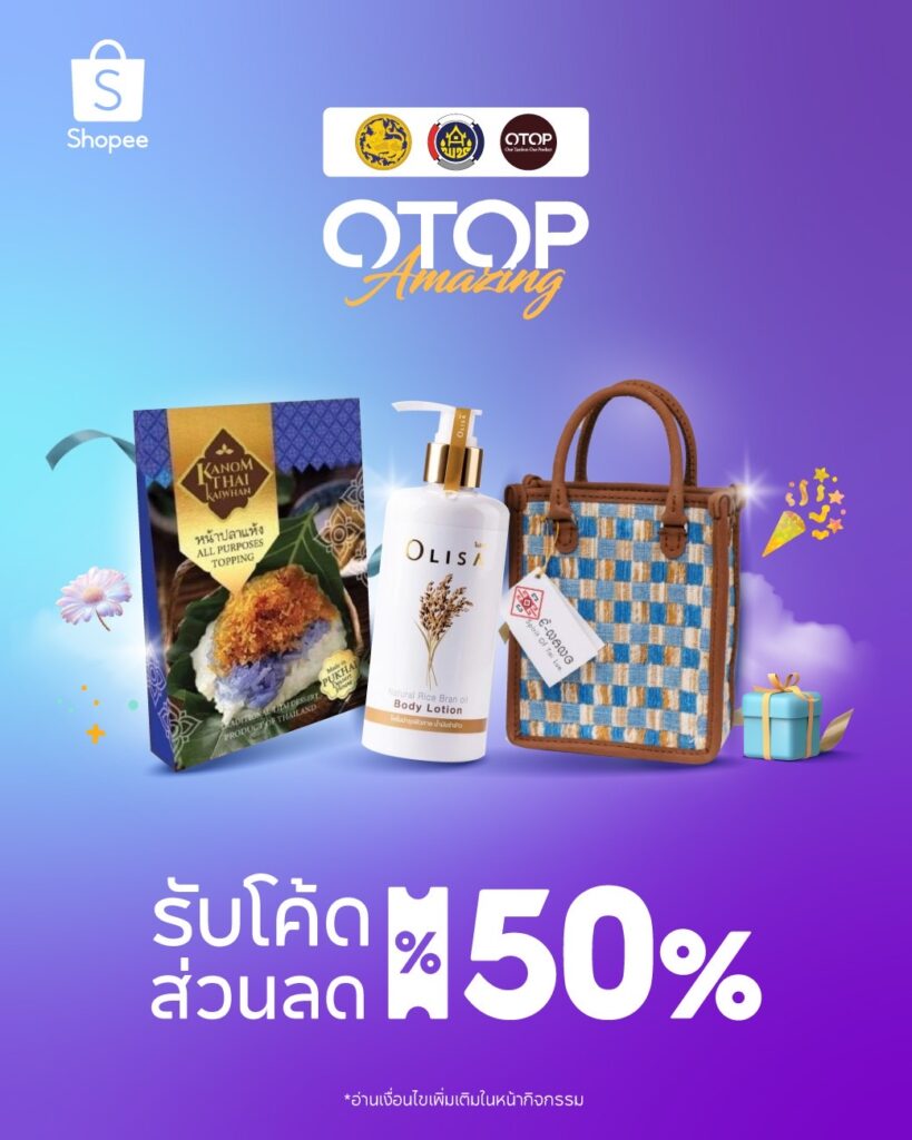 ทั้งนี้ แคมเปญ “Happy 63rd OTOP Birthday วันเกิด พช. ลดอลัง ของดังทั้งแผ่นดิน” ได้เตรียมโปรโมชั่นสุดคุ้มไว้ตลอดเดือนตุลาคม แบ่งออกเป็น 2 ช่วงพิเศษ ได้แก่ 1–15 ตุลาคม 2568: ลด 100 บาท เมื่อช้อปขั้นต่ำ 150 บาท (โค้ด: OTOP100) และ ลด 50 บาท เมื่อช้อปขั้นต่ำ 150 บาท (โค้ด: OTOP50) และ 16–31 ตุลาคม 2568: รับเงินคืน 50% สูงสุด 50 บาท พร้อมสิทธิ์ส่งฟรีทุกออเดอร์ ไม่มีขั้นต่ำ ผู้สนใจสามารถติดตามและสั่งซื้อได้ที่ https://shopee.co.th/otop หรือ พิมพ์คำว่า OTOP หรือ โอทอป ในช่องค้นหาในแพลตฟอร์ม ช้อปปี้ ได้ตลอดทุกวัน 24 ชม.